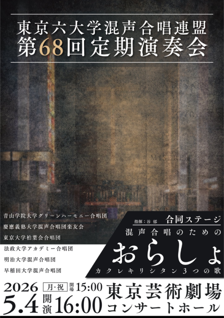 Apr 19 2026 0 第68回定期演奏会日時:2026年5月4日(月)・祝会場:東京芸術劇場開場:15:00 / 開演:16:00 皆様のご来場を心よりお待ちしております🙇♀️ チケットはこちらからリンク:teket.jp/2873/63881 Post navigation Previous PostPrevious 2026年『オール法政新年を祝う会』アーカイブ